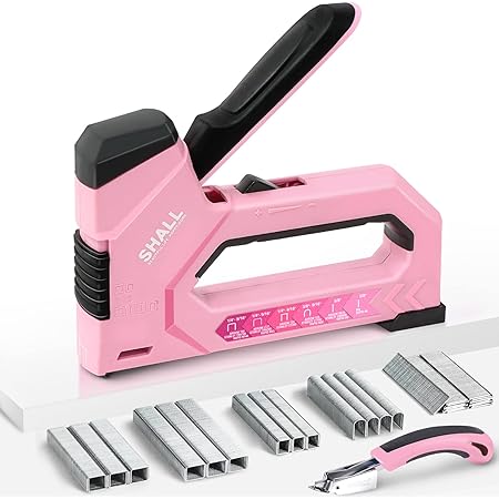 Amazon Com Shall 6 In 1 Staple Gun Heavy Duty Pink Upholstery Stapler Nail Gun With 4000 Counts Staples Women Manual Brad Nailer With Stapler Remover For Wood Crafts Fabric Decoration Carpentry Furniture